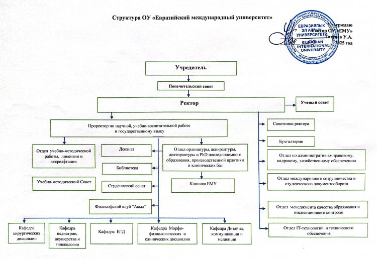Структура Евразийского международного медицинского университета (2021-2022 гг.)